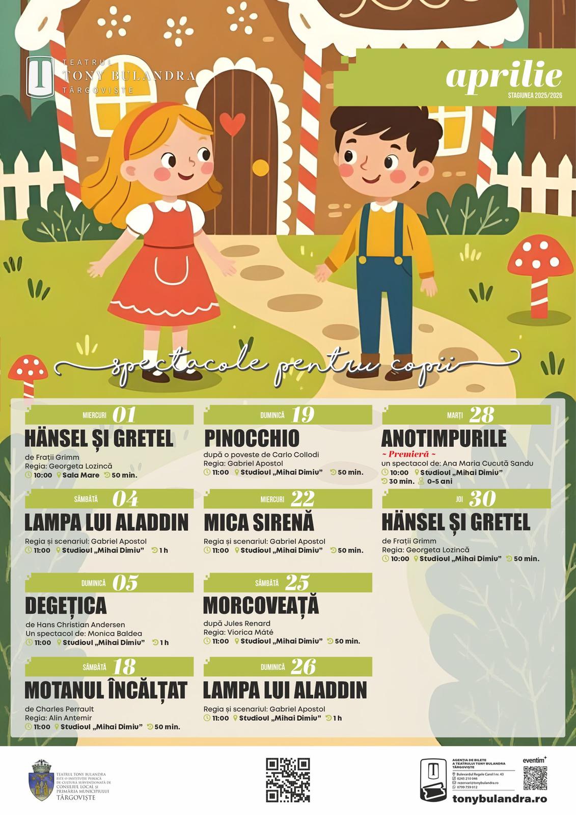 În luna aprilie, Teatrul Tony Bulandra din Târgoviște pune la dispoziția publicului o ofertă variată de spectacole, precum comedii de succes sau drame captivante, însă pregătește, totodată, și două premiere, respectiv „Nebunul și moartea” de Hugo von Hofmannsthal și “Anotimpurile” de Ana Maria Cucută Sandu.