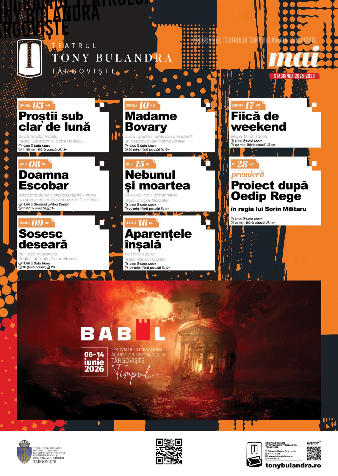 În această lună, Teatrul Tony Bulandra din Târgoviște propune publicului adult atât piese clasice, prin intermediul cărora pot fi redescoperite capodopere ale dramaturgiei universale, cât și piese moderne, în care sunt abordate teme actuale, relevante și provocatoare.