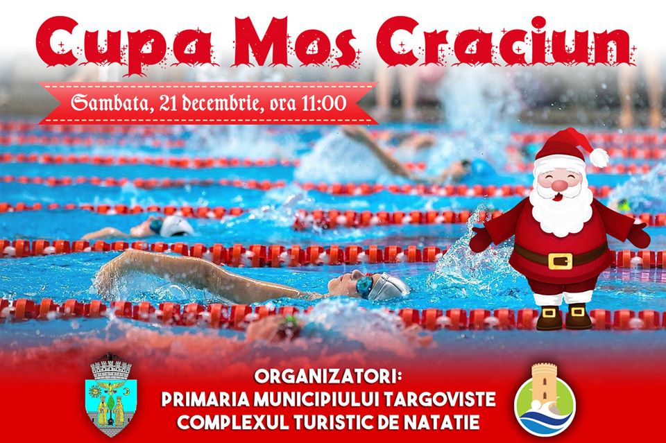 Complexul Turistic de Natație Târgoviște organizează sâmbătă, 21 decembrie, de la ora 11.00, Cupa Moș Crăciun. Moșul va trece pe la fiecare participant pentru a-i răsplăti alegerea de a înota.